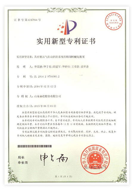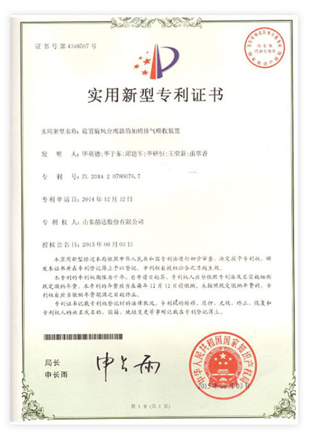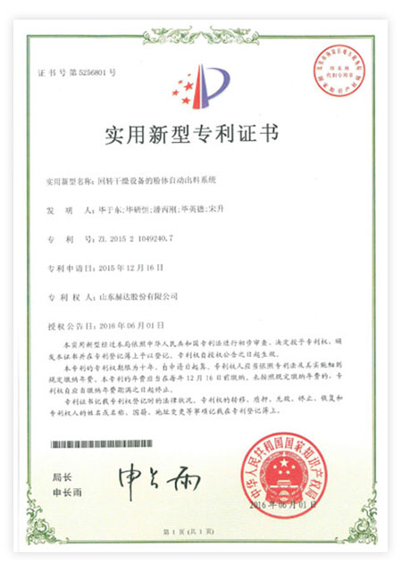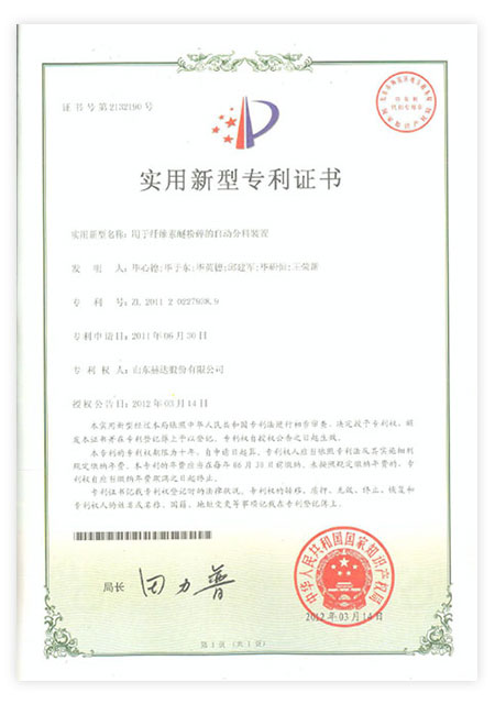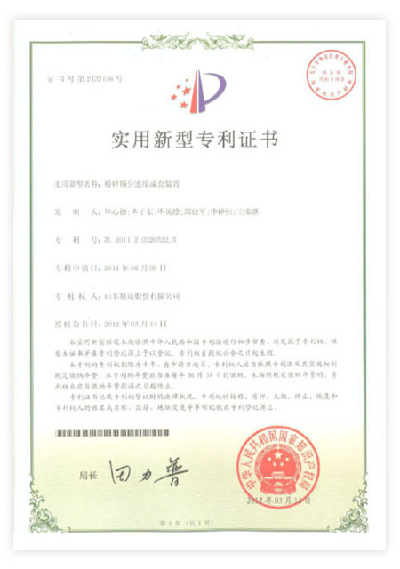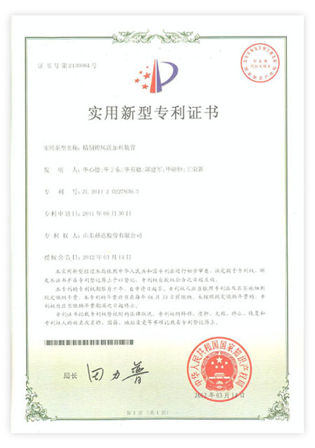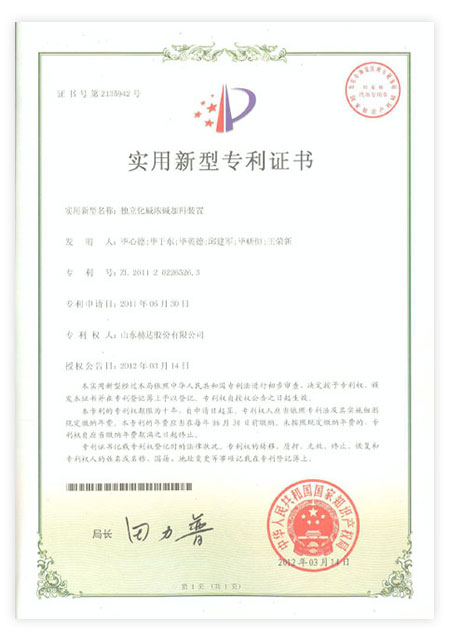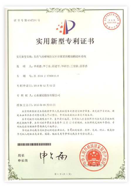 Head has 113 patents, including 23 invention patents and 90 utility model patents. "Machine granulation uniformity device" won the achievements of China's scientific and technological innovation. It has been awarded "High-tech Enterprise", "China Patent Shandong Star Enterprise", "China Science and Technology Innovation Invention Achievement", "Shandong Enterprise Innovation Award", "Zibo City Major Science and Technology Achievement", "Zibo City Science and Technology Achievement", "Most Influential Brand in Ready-Mixed Mortar Industry", "Best R&D Team", "Excellent Enterprise", "Excellent Technological Innovation Team" in Zhoucun District and other honorary titles by the relevant state departments for many times. In 2021, It was rated as a specialized, special, and new little giant enterprise, and was selected as the 26th among the "Top 100 Industrial Enterprises in Zibo City".